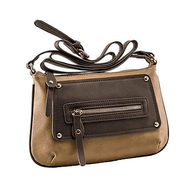The coffee tan color lends style and the grain embossed faux leather makes the bag strong enough to withstand daily use The straps of the bag can be adjusted in length as per your comfort Measuring 7 (h) x 10.5 (w) x 2 (d) , this bag is small in size and easy to carry