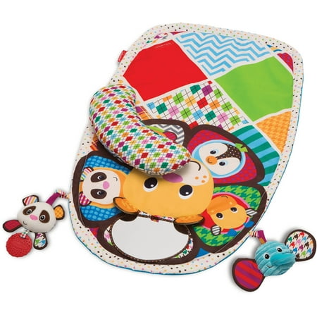 Play Tummy Time Activity Mat: Make tummy time a fun time with this sensory-stimulating activity matThe comfy, padded bolster pillow provides perfect tummy time support with plush play pals and large peek n' see mirror to encourage lifting, reaching and grabbingPerfect to start strengthening baby's arm, neck and tummy musclesQuestions about product recalls? Items that are a part of a recall are removed from the Walmart.com site, and are no longer available for purchase