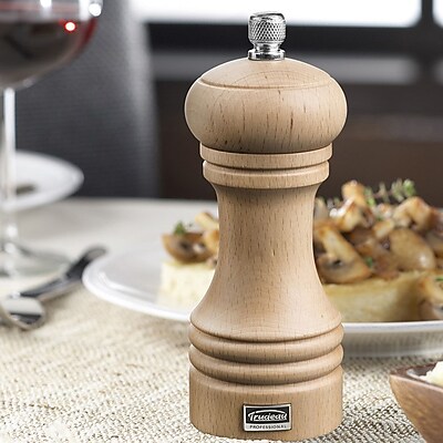 Made of European beech wood the Trudeau professional pepper mill delivers a consistent grind every time thanks to its spring loaded c Spring loaded carbon steel grinder Overall Height - Top to Bottom: 6.5