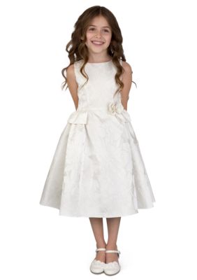 Us Angels Flower Girl Ballerina Length Sleeveless Brocade princess Bodice Dress With Peplum- Toddler Girls