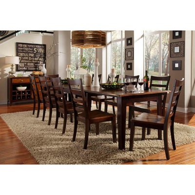 The Layla Dining Set feature a unique two-tone oak and espresso finish