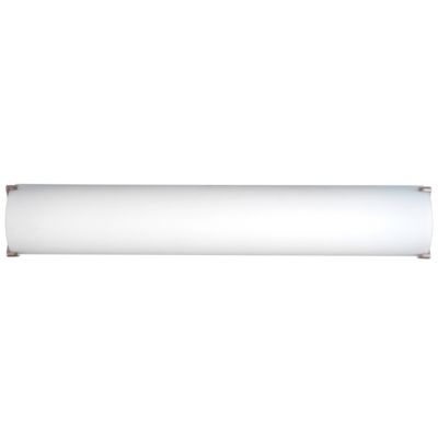 Supported at each end by tiny Satin Nickel clips, the expanse of soft Etched White glass provides a totally uninterrupted wash of energy-efficient LED illumination