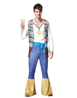 complete with bell bottom pants and peace sign necklace.Hippie Vest Men's Costume includes: Top with VestPantsNecklace Shoes not included Materials: 100% Polyester Wash/Care Instructions: Hand Wash Cold SeparatelyOnly Non-Chlorine Bleach When NeededDo Not Twist or WringLine Dry