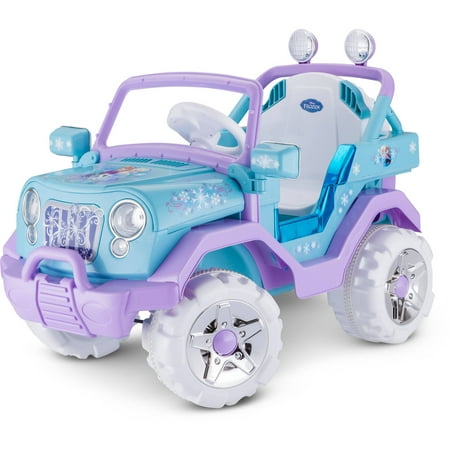 6V Disney Frozen 4x4, Blue/Purple: All-Terrain rough and rugged body styleForward and reverse speedsReal working horn and engine soundsPower Trax rubber traction strip tires6 volt rechargeable battery and chargerOne rider, max weight 60 lbsAge range: 3 years and up