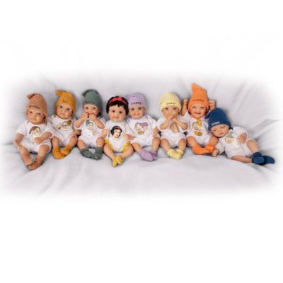 To celebrate the 75th anniversary of one of Disney's most beloved classic films, here are the Disney Snow White and the Seven Dwarfs characters in a miniature baby doll collection to completely win your heart! Through the charming artistry of doll artist Cheryl Hill, each Disney baby doll in this collection has precious expressions and poses that remind you of Snow White and her beloved dwarf companions