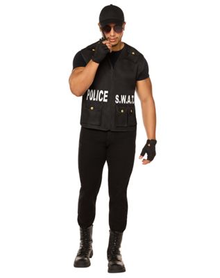 Lay down the law in this official looking adult's SWAT vest and take charge on Halloween.The adult's SWAT vest is made of black polyester with a zipper closure and white SWAT graphics