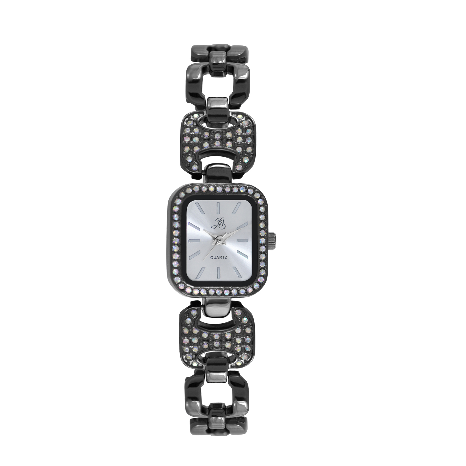 Jaclyn Smith Ladies Dark Silver Plated Square with Stone Accents Bracelet Watch, Women's